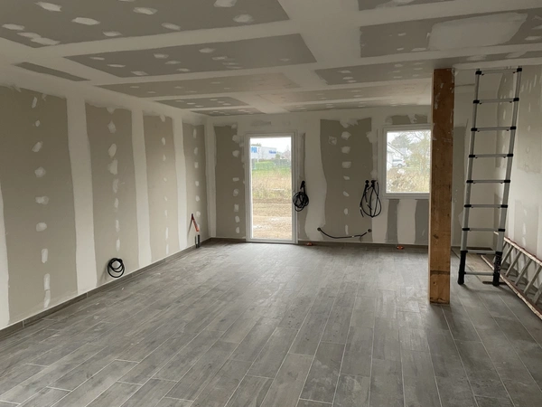 POSEZ VOS VALISES DANS VOTRE MAISON LIVREE FIN MARS 2022 ! PROXIMITE IMMEDIATE DU CENTRE VILLE / AU CALME / GRANDE PIECE DE VIE / TROIS CHAMBRES, UNE SALLE D'EAU, UNE SALLE DE BAINS DONT UNE CHAMBRE ET UNE SALLE D'EAU AU REZ DE CHAUSSEE / CHAUFFAGE PAR LE SOL / LABELS : RT 2012, PROMOTELEC.... Maison de 106.65 m2 au sol ( 93.80 m2 loi CARREZ ) comprenant au RDC : Une pièce de vie de 43.52 m2 ( séjour/salon/cuisine ), une chambre, une salle d'eau, un WC, un cellier. A l'étage : deux chambres, une SDB avec WC. Un garage attenant à la maison. Terrain de 300 m2 Réglementation thermique 2012, chauffage et eau chaude par aèrothermie ( pompe à chaleur ),au sol basse température au RDC, radiateurs à l'étage, menuiseries aluminium laquées bicolore, gris clair face extérieure, blanc face intérieure, volets roulants Aluminium et PVC électriques, Installation électrique aux normes PROMOTELEC, charpente traditionnelle, couverture ardoises naturelles, carrelage 45x45 ( 30x30 dans cellier ), faïence 25x40, raccordement au tout à l'égout. Options : frais de notaire réduits, aménagements extérieus, espaces verts. Pour plus de renseignements : contactez votre conseiller immobilier NOOVIMO : Jean-Louis MEUNIER, portable : 06 68 89 28 00, mail : jlmeunier@noovimo.fr, site : jlmeunier.noovimo.fr, mandataire indépendant inscrit au RSAC de Saint-Nazaire sous le No 481 853 406. Honoraires de 3.90 % TTC de 200 000 EUR ( Prix de vente honoraires exclus ). Soit 207 800 EUR ( honoraires inclus ) Honoraires à la charge de l'acquéreur. Nos honoraires sont consultables sur : www.noovimo.f 1 - Annonce rédigée et publiée par un Agent Mandataire -